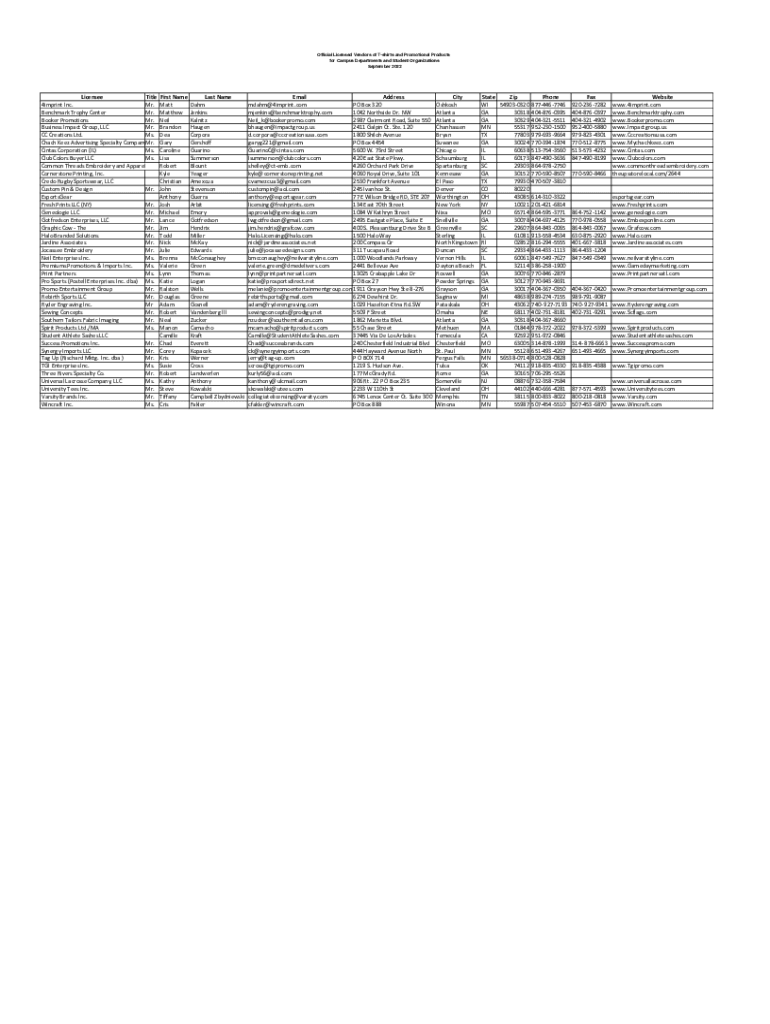 Official Licensed Vendors of Shirts and Promotional Products for Campus Departments and Student Organizations September 2022Licensee Title 4imprint Inc. Mr. Benchmark Trophy Center Mr. Booker Promotions