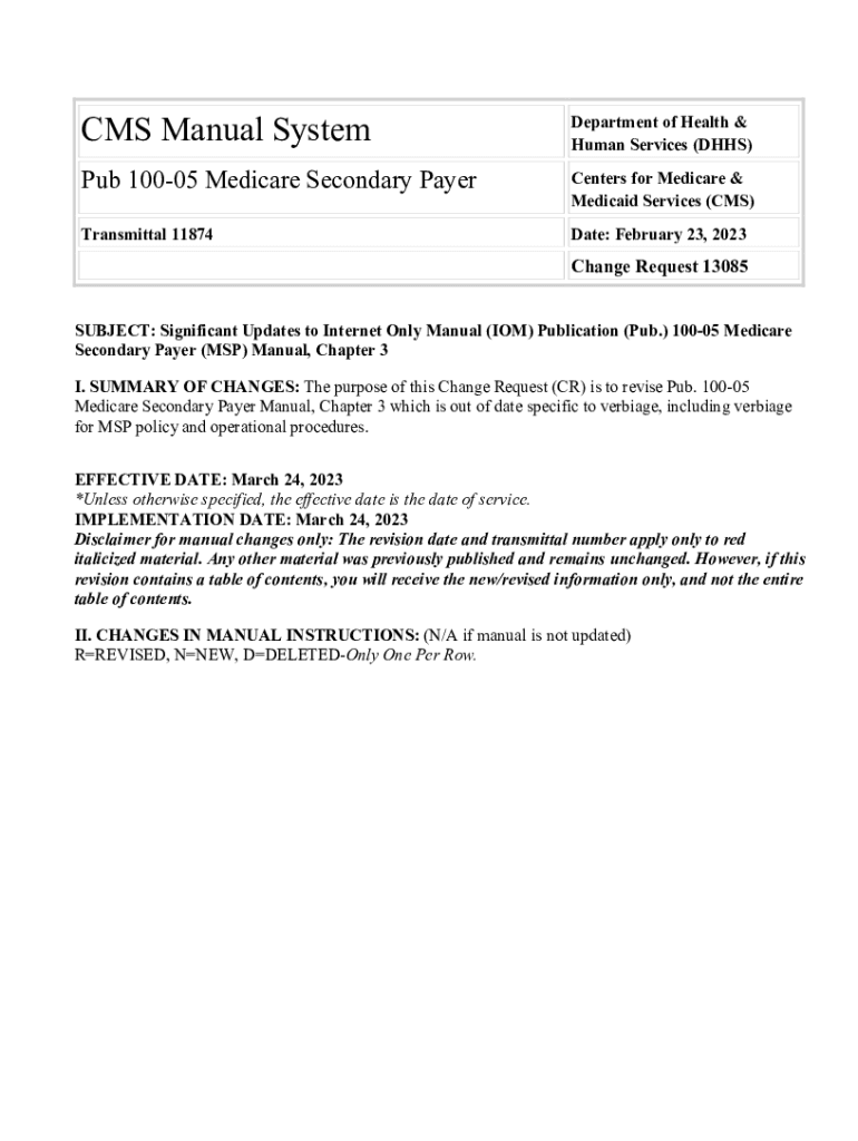 CMS Manual SystemDepartment of Health & Human Services (HHS)Pub 10005 Medicare Secondary Supercenters for Medicare & Medicaid Services (CMS)Transmittal 11874Date: February 23, 2023Change Request 13085