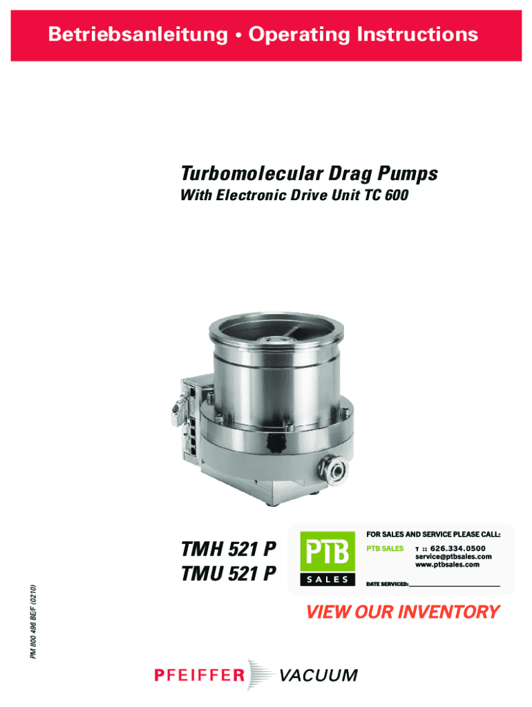 Betriebsanleitung Operating InstructionsTurbomolecular Drag Pumps With Electronic Drive Unit TC 600PM 800 496 BE/F (0210)AMH 521 P TAU 521 Index PagePage1. Safety Instructions ..................................