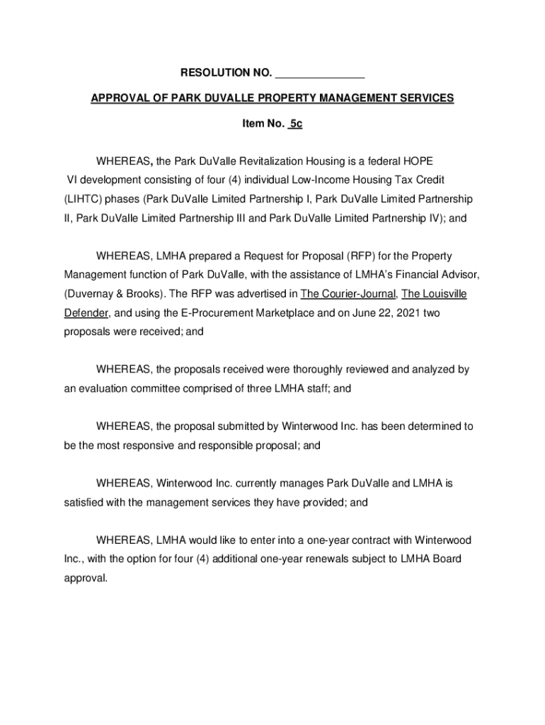 Item No. 5cWHEREAS, the Park Duvall Revitalization Housing is a federal HOPE
