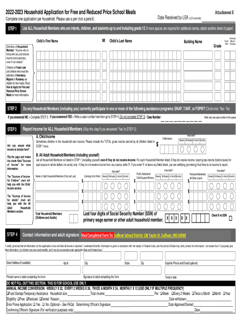 Attachment E20222023 Household Application for Free and Reduced Price School Mandate Received by LEA (LEA use only)Complete one application per household. Please use a pen (not a pencil).STEP 1List