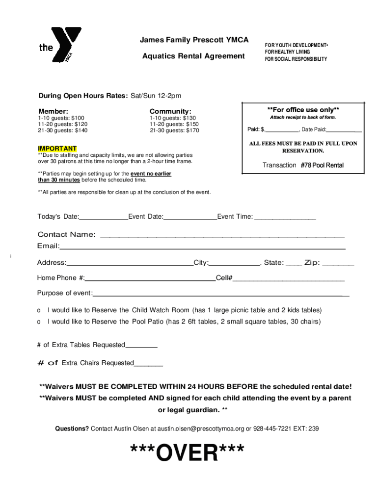 Aquatics Rental Agreement YOUTH DEVELOPMENT