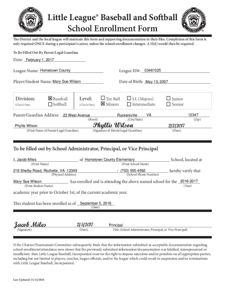 L I T T L E L E AG U E BA S E BA L A N D S O F T BA LL TOURNAMENT PLAYER VERIFICATION Date Requested June 1, 2017 ___(check one)BASEBALLSOFTBALL03461025 League ID# ___Hometown County League Name ___PLAYER