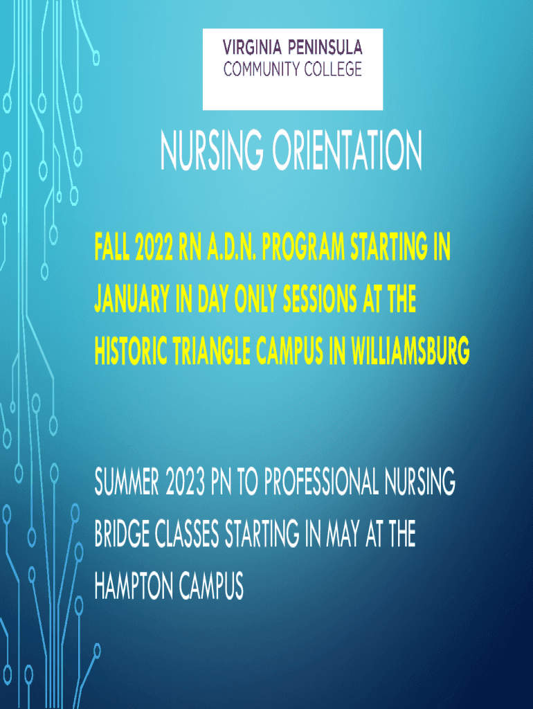 Get the free Nursing Orientation - Virginia Peninsula Community College