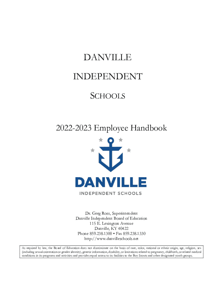 DANVILLE INDEPENDENT SCHOOLS 20222023 Employee Handbook Dr. Greg Ross, Superintendent Danville Independent Board of Education 115 E. Lexington Avenue Danville, KY 40422 Phone 859.238.1300 Fax 859.238.1330