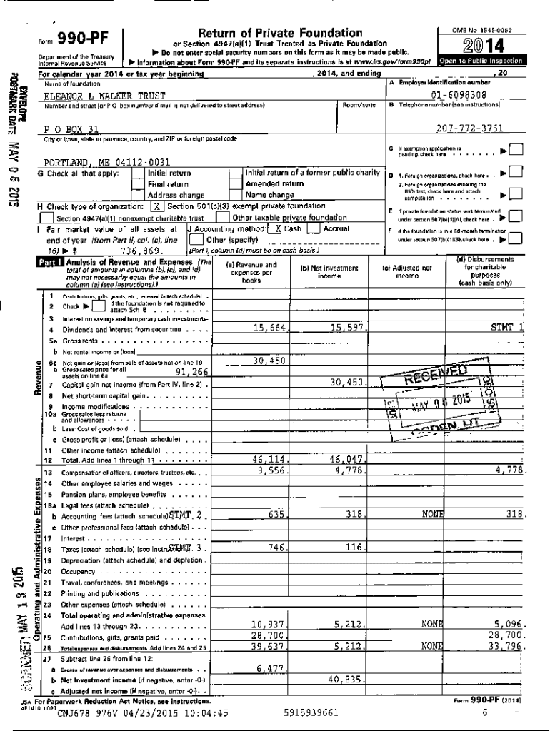 Department of the Treasury Internal Revenue Service or Section 4947(a)(1) Trust Treated as Private Foundation ^ Do not enter social security numbers on this form as it may be made public. ^ Information