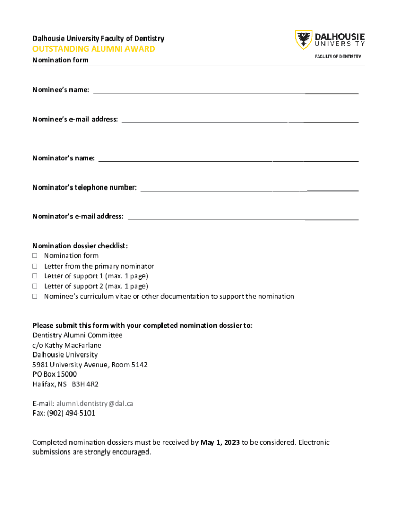 Get the free Nomination Form - Faculty of Agriculture - alumni dal