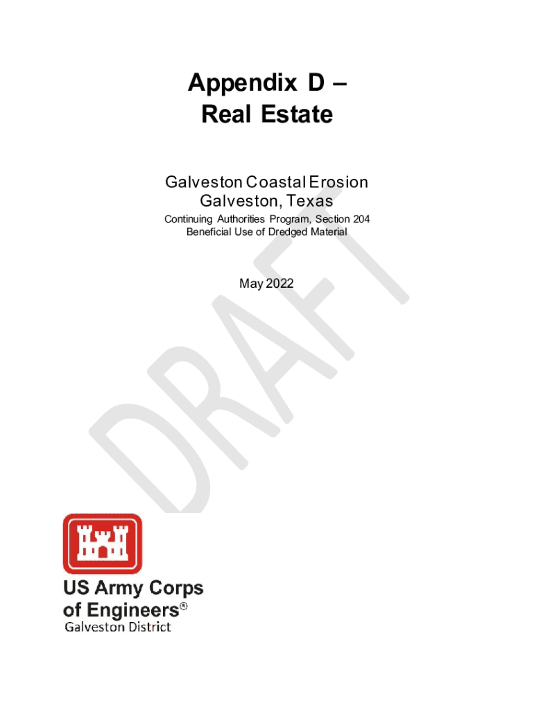 Appendix D Real Estate Galveston Coastal Erosion Galveston, TexasContinuing Authorities Program, Section 204 Beneficial Use of Dredged Material May 2022(NOTE: This page intentionally left blank.)