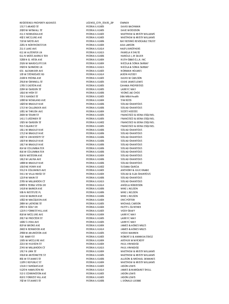 REGISTERED PROPERTY ADDRESS 1317 S ARAGON ST 2020 W MISCALL ST 411 E NEBRASKA AVE 402 E McClure AVE 710 W MOSS AVE 2201 N NORTHWEST DR 211 E LAKE AVE 611 W ALTERED LN 611 N MOSS AVENUE TER 3208 N