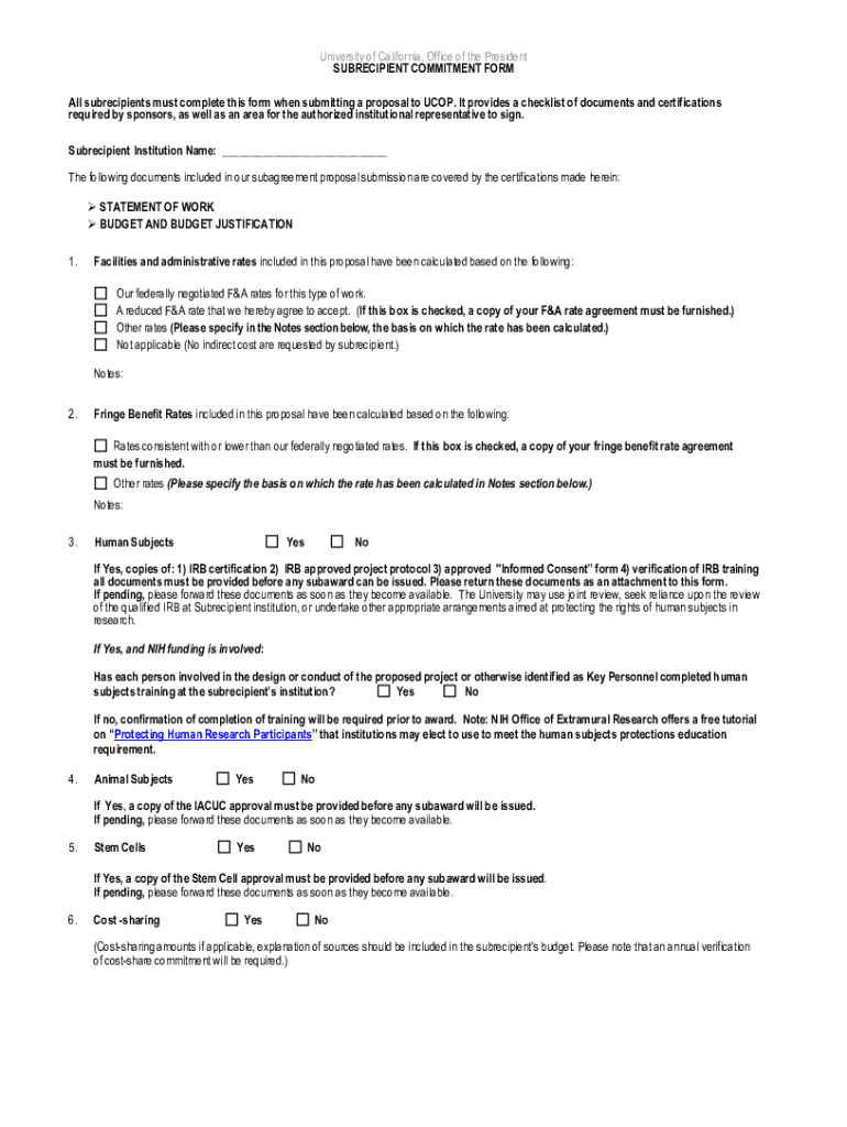 Get the free University of California, Office of the President Subrecipient Commitment Form