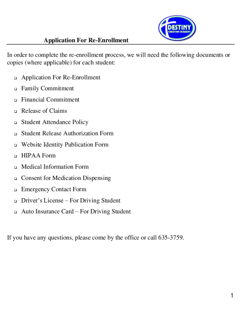 Application For ReEnrollmentFamily CommitmentFinancial