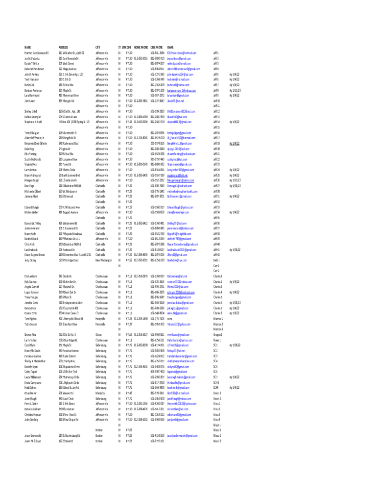 Get the free NAME ADDRESS CITY ST ZIP CODE HOME PHONE CELL ...