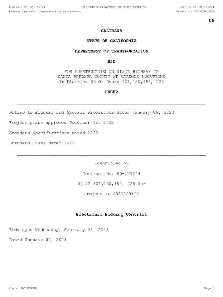 Contract ID: 051N9204CALIFORNIA DEPARTMENT OF TRANSPORTATIONBidder: Trues dell Corporation of California, Inc. Letting ID: 051N9204 Bidder ID: VC000001731605 COLTRANE STATE OF CALIFORNIA DEPARTMENT