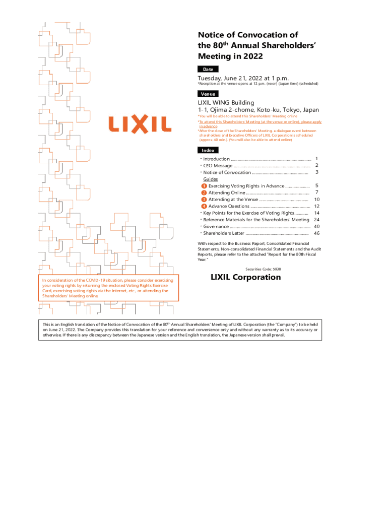 Get the free Notice of Convocation of the 80th Annual Shareholders' ...