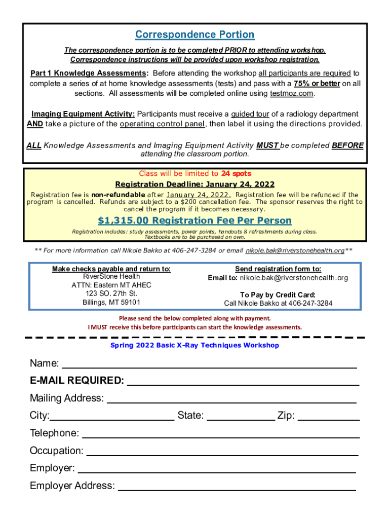 Basic Ray Techniques Workshop Spring 2022 March 11121314 & cont. 25262728, 2022 Class Hours: 8:00AM6:00PMInitial training for those preparing to take the ART national registry exam to become licensed