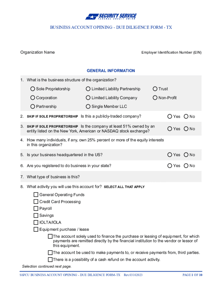 Get the free BUSINESS ACCOUNT OPENING - DUE DILIGENCE FORM - TX