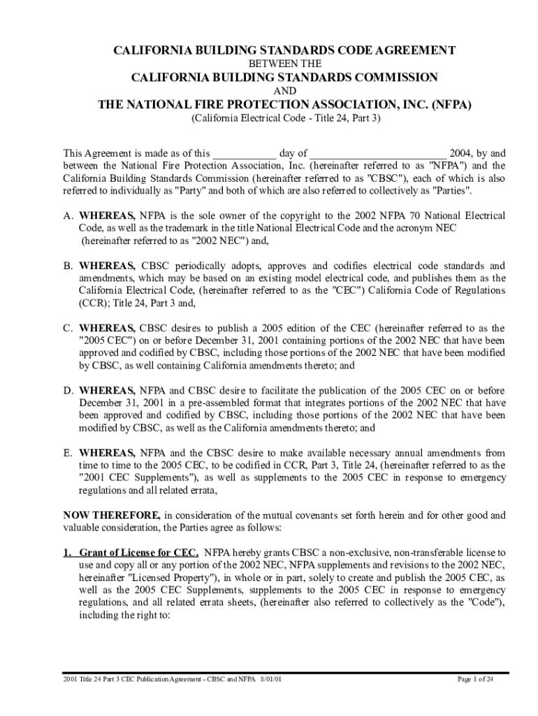 CALIFORNIA BUILDING STANDARDS CODE AGREEMENT