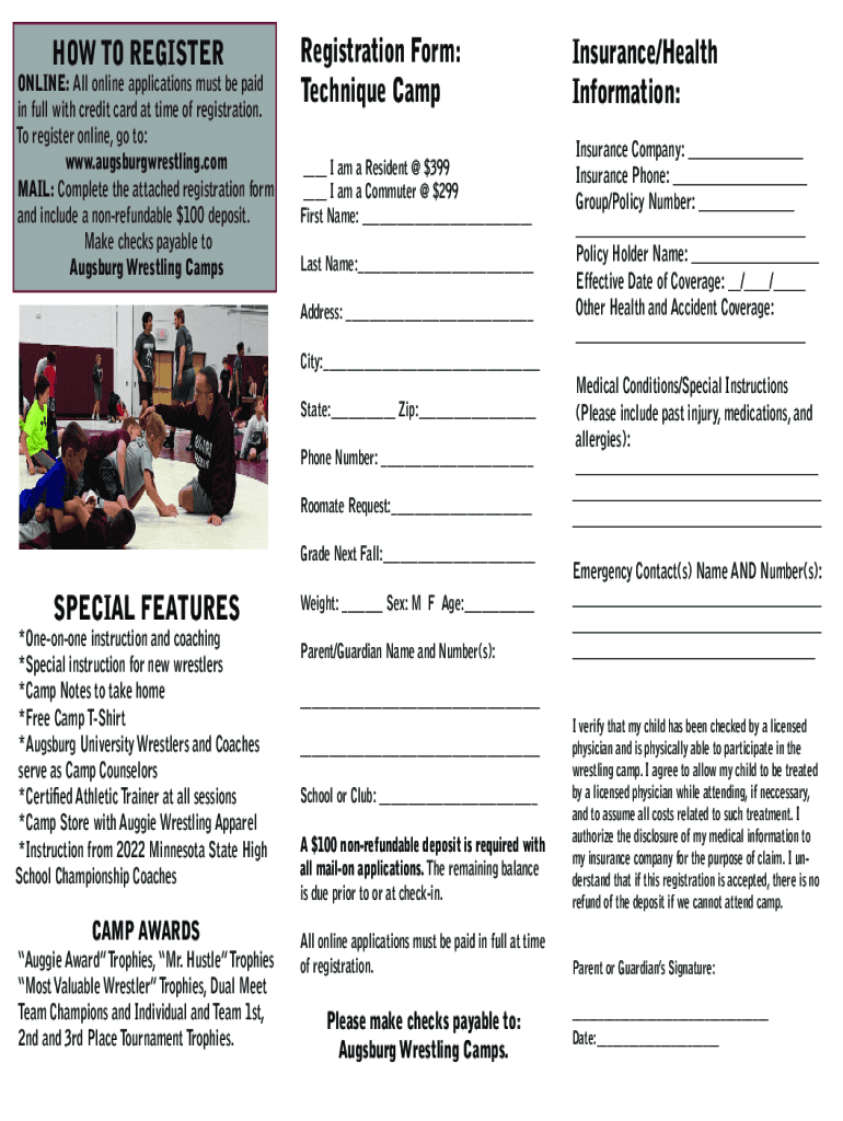 Fill out your registration form technique camp online with pdfFiller!