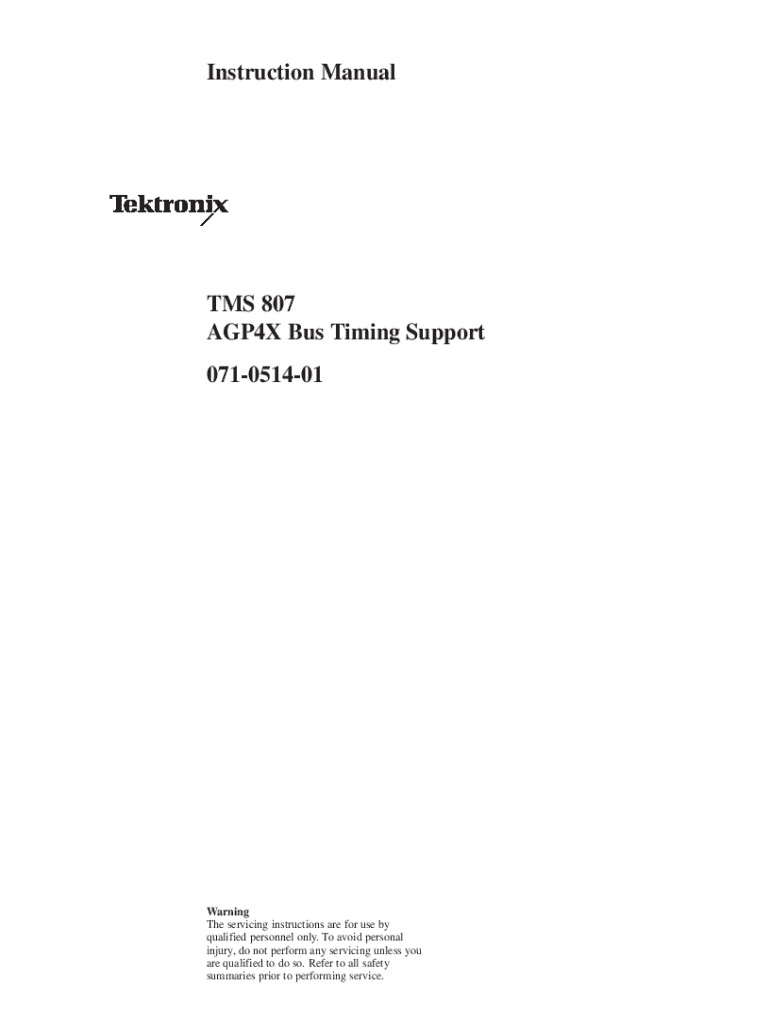 Instruction Manual TMS 807 AGP4X Bus Timing Support 071051401Warning The servicing instructions are for use by qualified personnel only. To avoid personal injury, do not perform any servicing unless