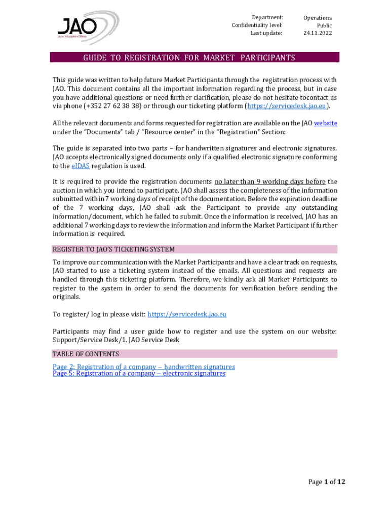 Department: Confidentiality level: Last update:Operations Public 24.11.2022 2GUIDE TO REGISTRATION FOR MARKET PARTICIPANTS This guide was written to help future Market Participants through the registration
