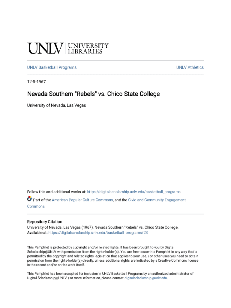 Get the free Nevada Southern "Rebels" vs. Chico State College - digitalscholars...