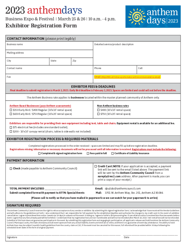 days 2023Business Expo & Festival | March 25 & 26:10 a.m. 4 p.m. Exhibitor Registration Form