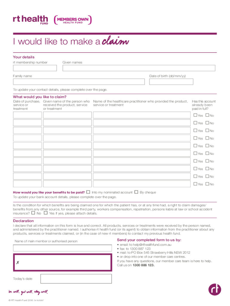Fill out your rt health claim form online with pdfFiller!