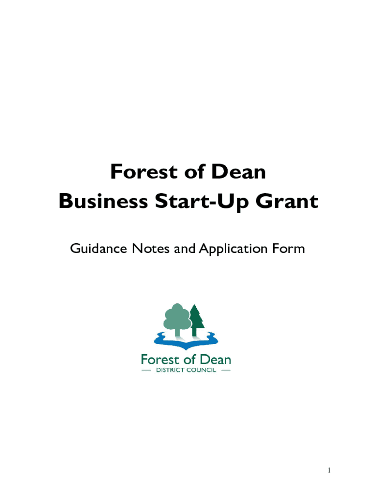 Forest of Dean Business Startup Grant Guidance Notes and Application Form1Forest of Dean Business Startup Grant Guidance NotesAbout The Forest of Dean District Council recognizes the enterprising