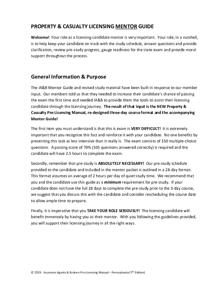 Get the free PROPERTY & CASUALTY LICENSING MENTOR GUIDE General ...