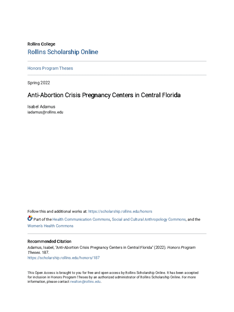Rollins College Rollins Scholarship Online Honors Program These Spring 2022AntiAbortion Crisis Pregnancy Centers in Central Florida Isabel Adams iadamus@rollins.eduFollow this and additional works
