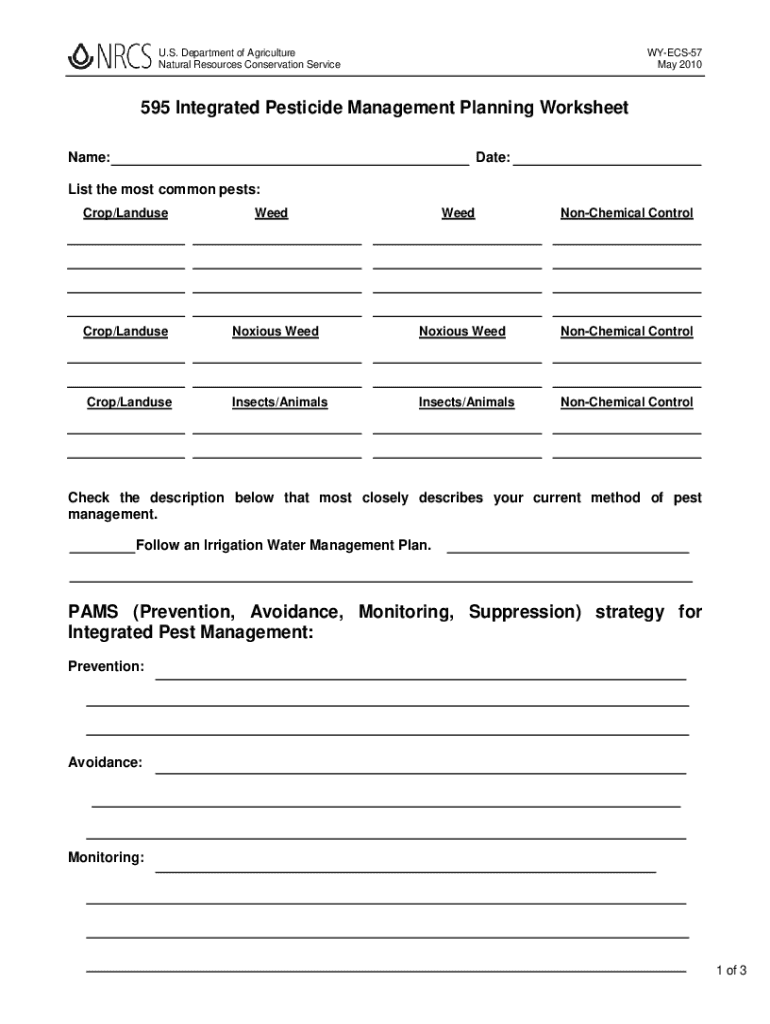 May 2010595 Integrated Pesticide Management Planning Worksheet