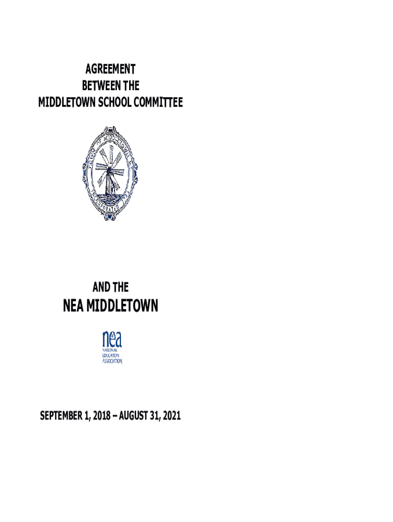 MIDDLETOWN SCHOOL COMMITTEE AND THE NEA MIDDLETOWNSEPTEMBER 1, 2018 AUGUST 31, 2021NEAM Negotiations Team