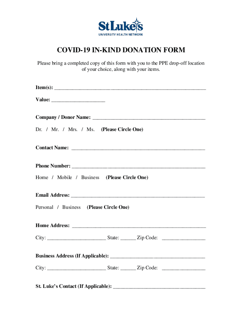 COVID-19 INKING DONATION FORM Please bring a completed copy of this form with you to the PPE drop-off location of your choice, along with your items. Item(s): ___ Value: ___ Company / Donor Name: