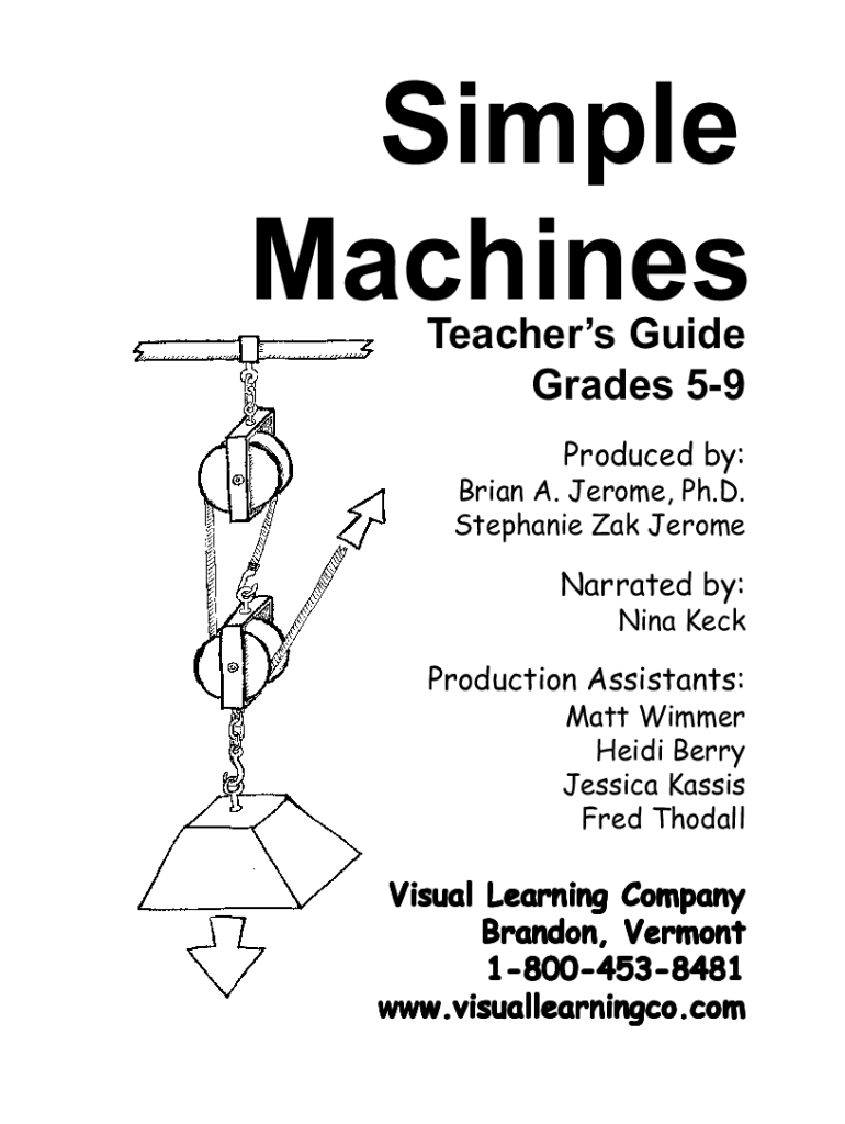 Simple Machines Teachers Guide Grades 59Produced by: Brian A. Jerome, Ph.D. Stephanie Oak JeromeNarrated by: Nina Reproduction Assistants: Matt Swimmer Heidi Berry Jessica Basis Fred ThodallVisual