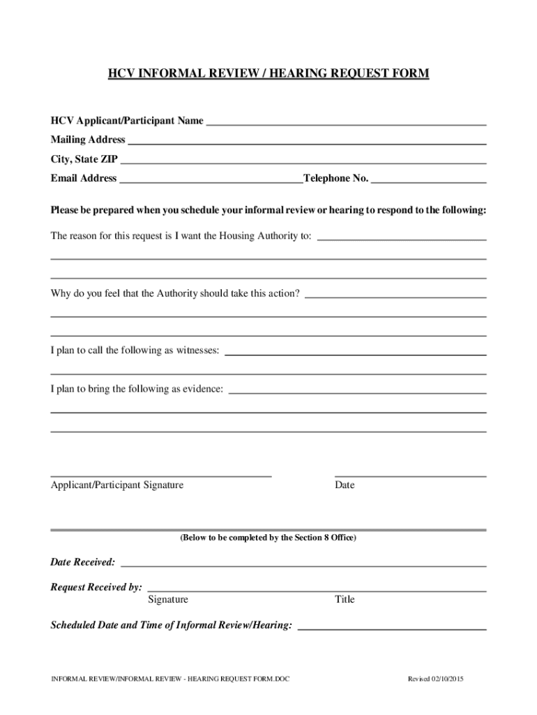 Get the free HCV INFORMAL REVIEW / HEARING REQUEST FORM