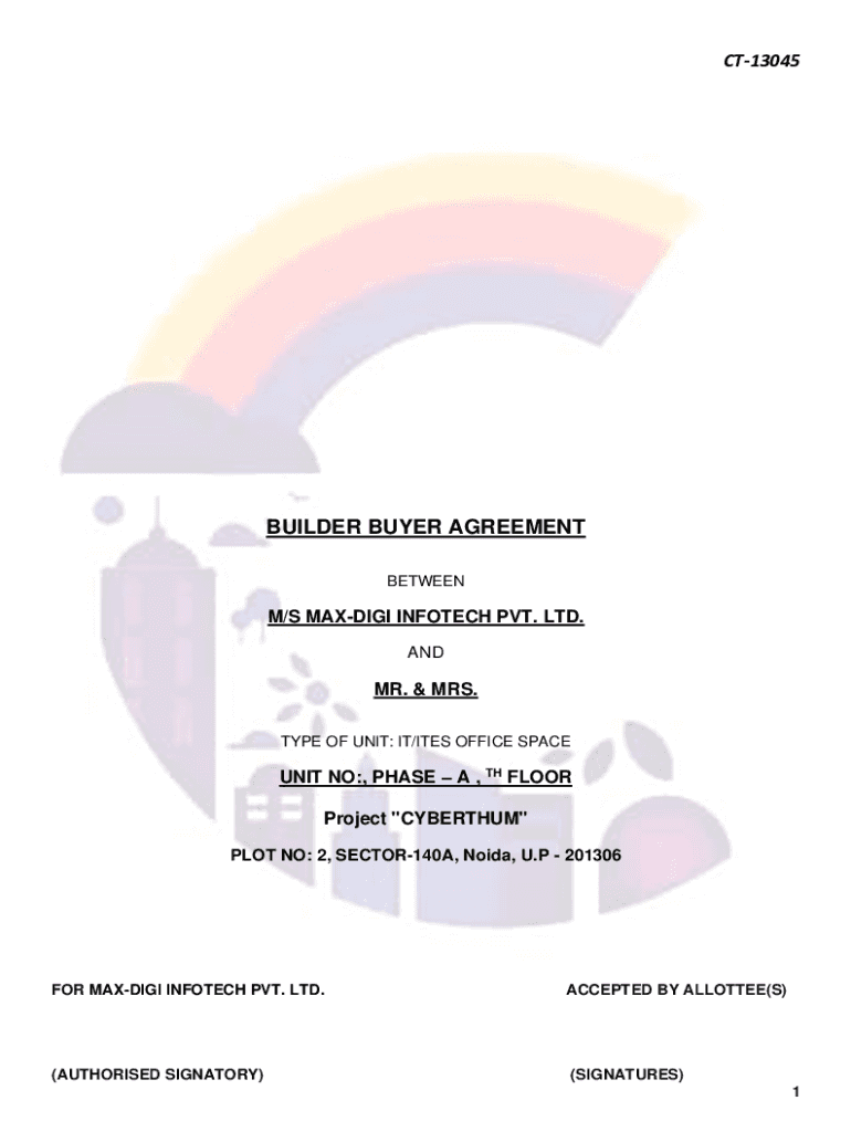 The builder buyer agreement can be filled out by including all necessary details such as property description, payment terms, possession date, etc.