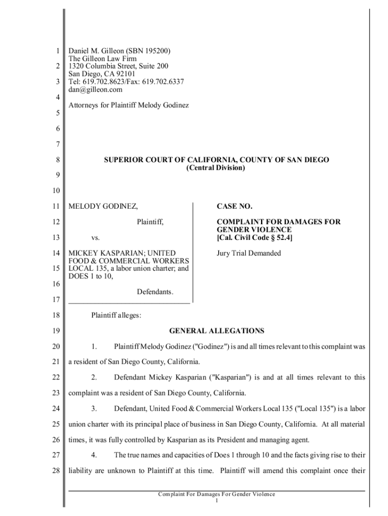 1 2 3Daniel M. Galleon (SON 195200) The Galleon Law Firm 1320 Columbia Street, Suite 200 San Diego, CA 92101 Tel: 619.702.8623/Fax: 619.702.6337 dan@gilleon.com4 Attorneys for Plaintiff Melody Godínez