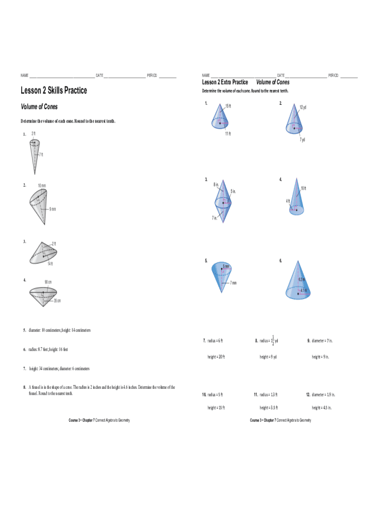 Get the free Lesson 2 homework practice volume of cones 24MFEZ