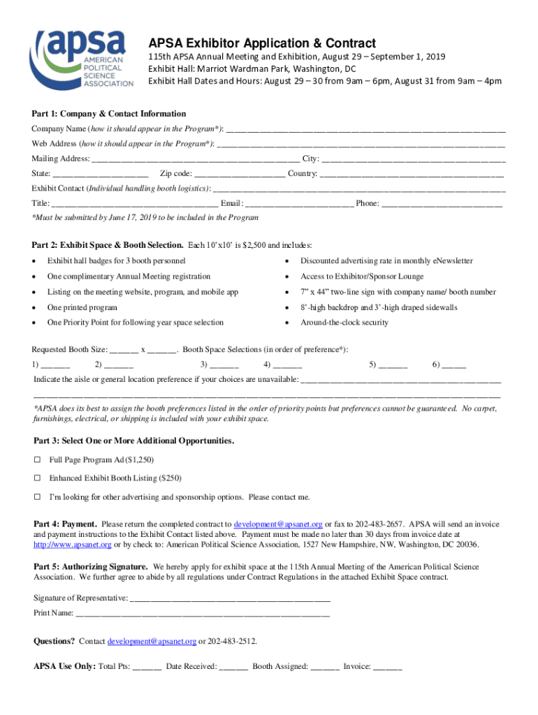 Get the free Exhibitor Application & Contract - APSA Connect
