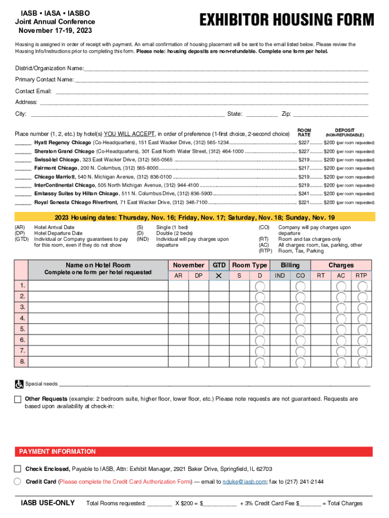 IASB NASA IASB Joint Annual Conference November 1719, 2023EXHIBITOR HOUSING Warehousing is assigned in order of receipt with payment. An email confirmation of housing placement will be sent to the