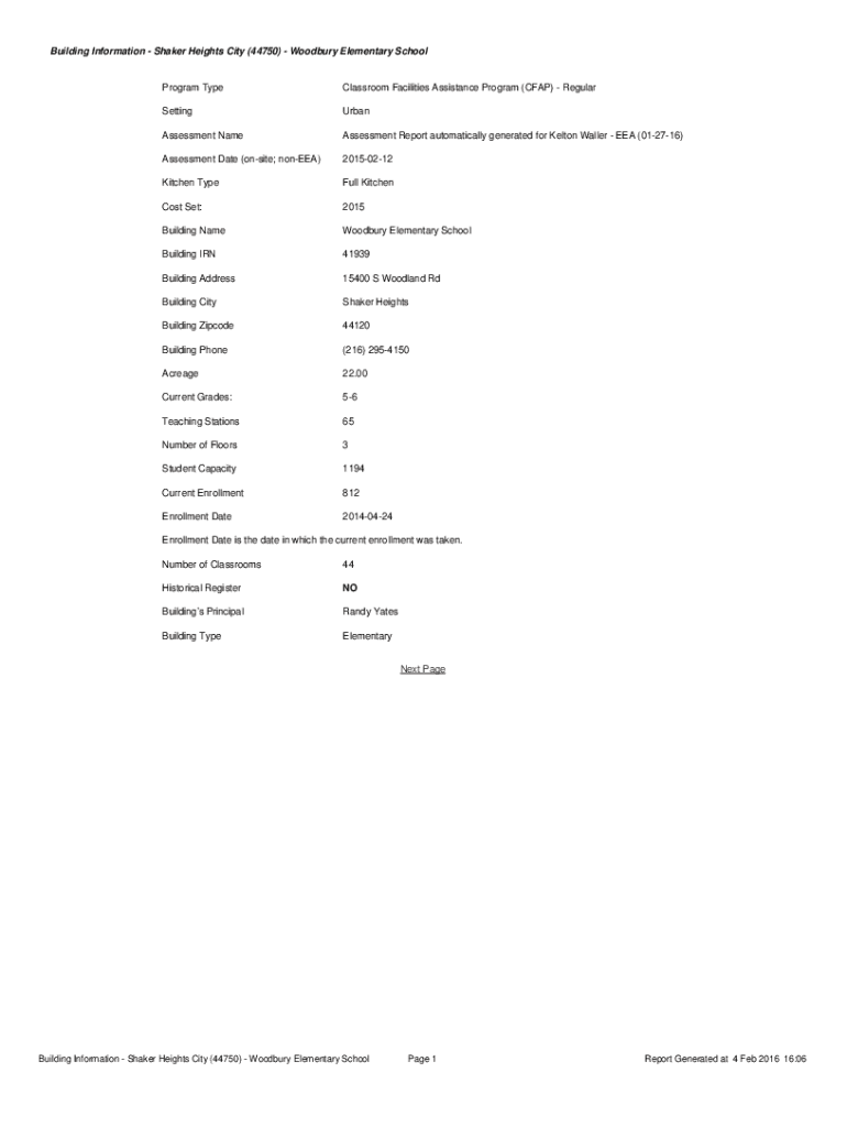 Get the free Building Information - Shaker Heights City (44750) - Woodbury Elementary School