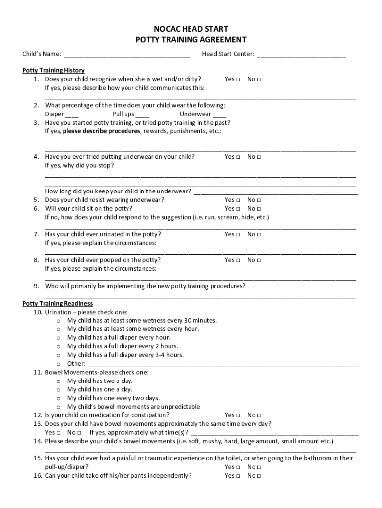Get the free NOCAC HEAD START POTTY TRAINING AGREEMENT