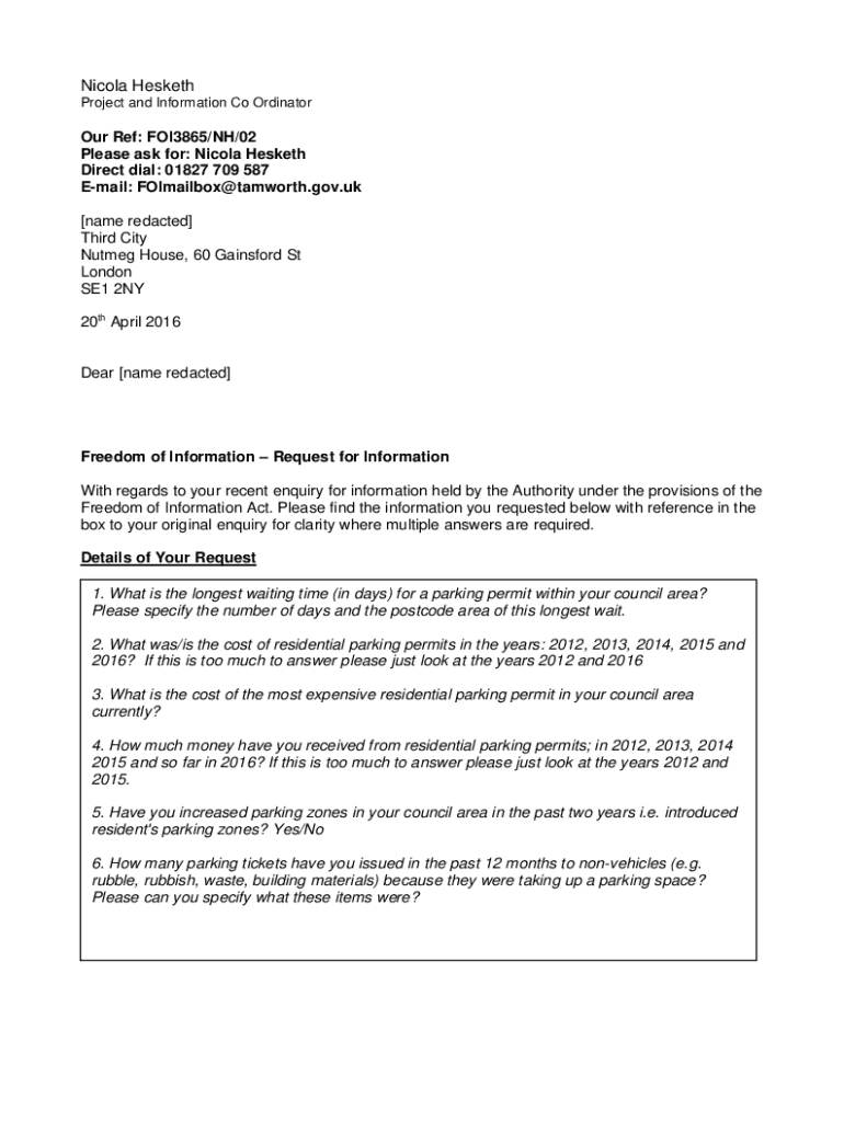 Get the free FOI4933/NH/02 Please ask for: Nicola Hesketh Direct dial - tamworth gov