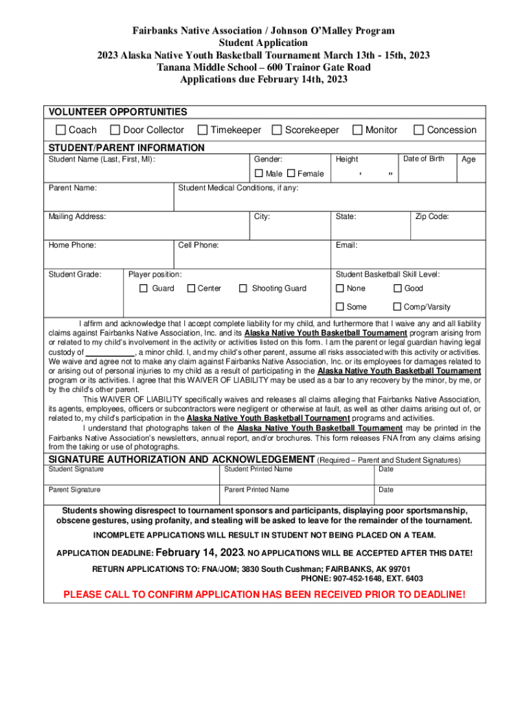 Get the free Fairbanks Native Association / Johnson O'Malley Program Student ...