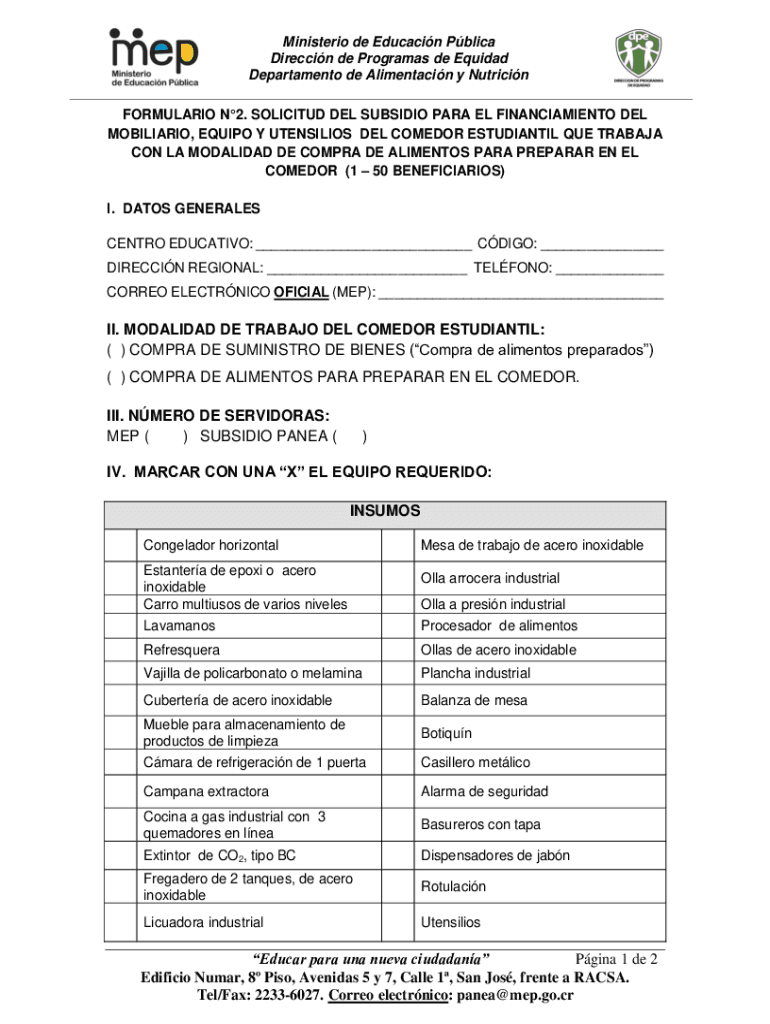 FORMULA RIO N2. SOLICITED DEL SUBSIDIES PARA EL FINANCIAMIENTO DEL