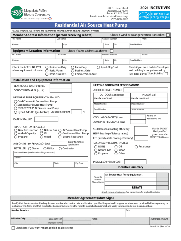 PLEASE complete ALL sections and sign form to ensure proper and prompt payment of rebate. Member Address Information (person receiving rebate)