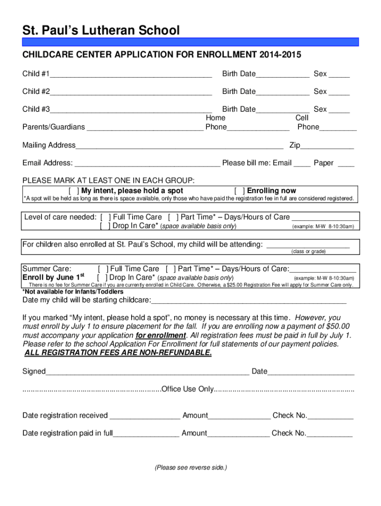 Get the free Online Forms - Saint Paul's Lutheran School & Childcare Center