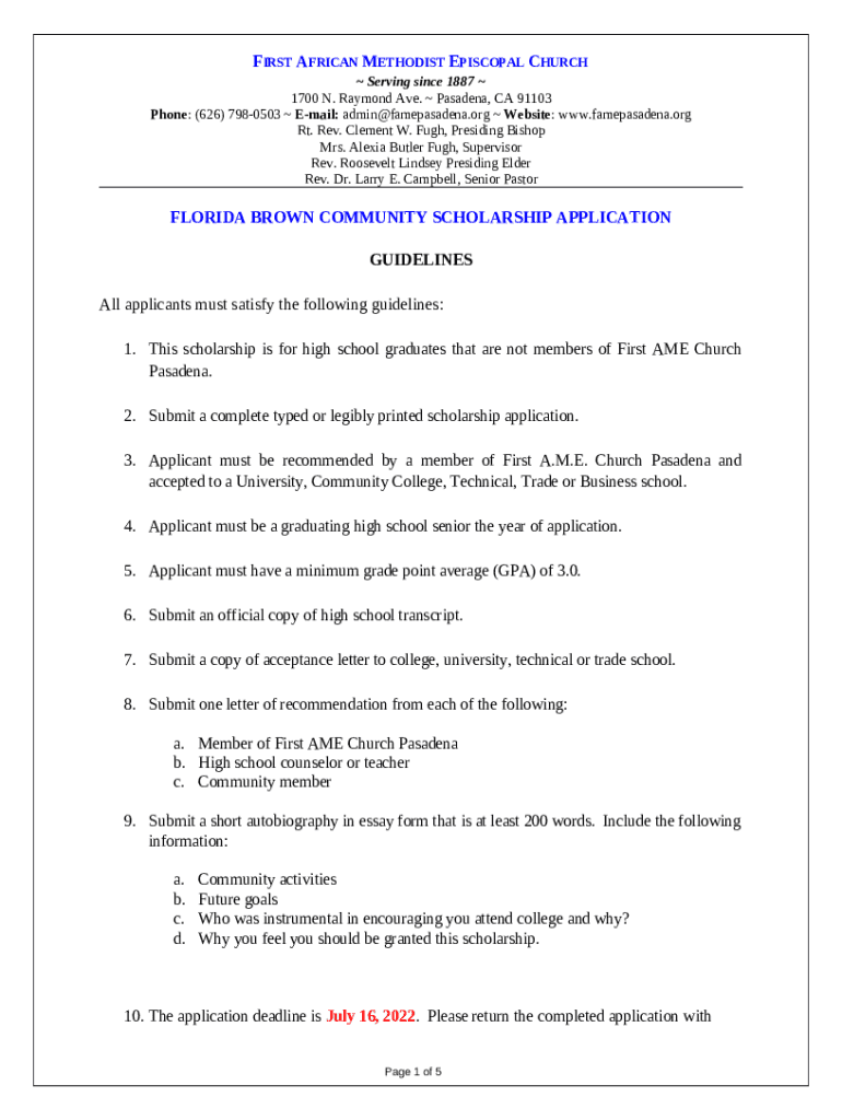 Instructions for the MARIE SUMPTER MEMORIAL SCHOLARSHIP FUND GUIDELINES form