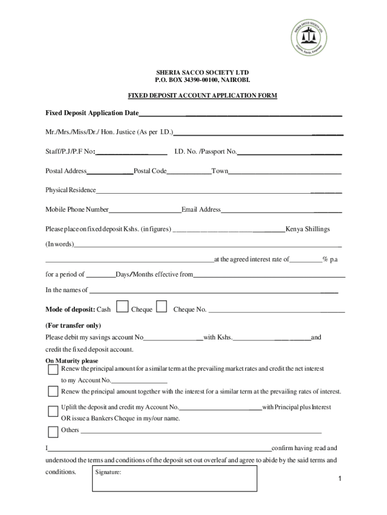 Get the free Fixed-Deposit-Form.pdf - Nairobi
