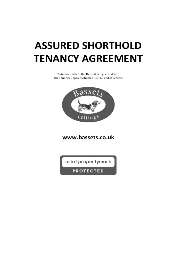 ASSURED SHORTHAND TENANCY AGREEMENT To be used where the Deposit is registered with The Tenancy Deposit Scheme (TDS) Custodial Scheme.bassets.co.guidance NOTES FOR TENANTS Welcome to your Assured